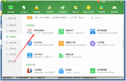 解決方法:使用360安全衛士里邊的實用工具,找到斷網工具箱,進行檢測,并修復即可。