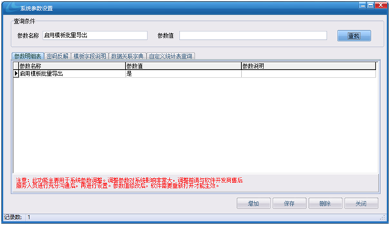 解決辦法:在【系統(tǒng)設(shè)置中心】中的【系統(tǒng)設(shè)置參數(shù)設(shè)置】中的【啟用模板批量導(dǎo)出】