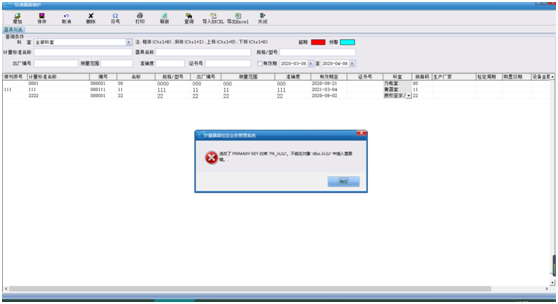 維護標準器進行添加時提示重復鍵問題(可自行解決)