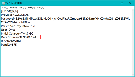 打開軟件的根目錄,找到TMIS.ini的文件,使用記事本打開然后將紅框編注的地方設(shè)置為新的IP地址即可。