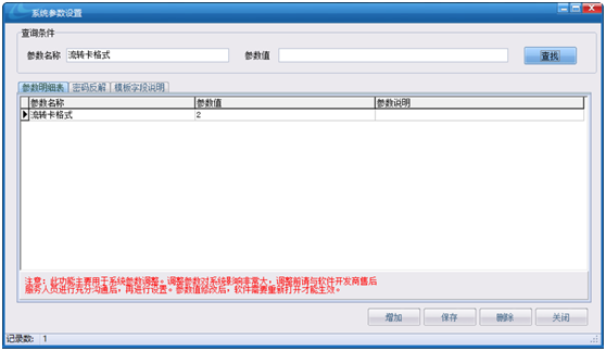 使用系統(tǒng)管理員賬號登錄,點擊打開系統(tǒng)設置中心?系統(tǒng)參數設置,搜索參數名稱(流轉卡格式),可修改參數值為0-5進行修改流轉卡格式。然后重啟一下軟件,重新登錄即可