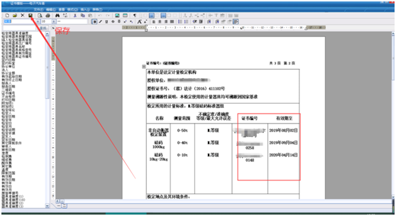 修改標準器的證書編號和有效期的信息,并點擊保存按鈕