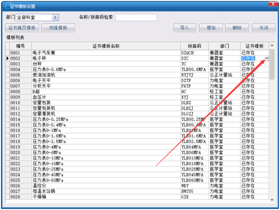 如果沒有維護標準器具的話:【基礎信息設置】→【證書模板設置】,找到需要修改標準器具的模板。點擊【已存在】后邊的三個點